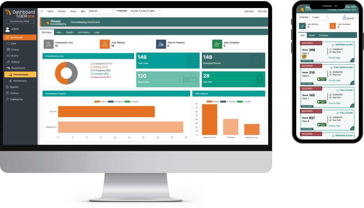 - EFFORTLESS STAFF MANAGEMENT AND OPTIMISED OPERATIONS: iReadyHousekeeping helps prioritise tasks based on guest needs and room occupancy, maximising staff productivity. Managers can track cleaning progress, room readiness, and staff performance in real-time, allowing for data-driven decisions and optimised scheduling.